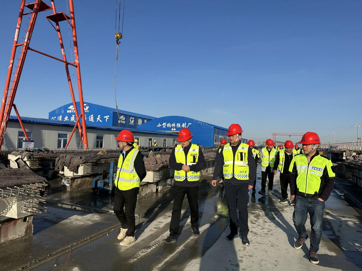 侯云(前排右二)在星哈5标梁场检查指导工作